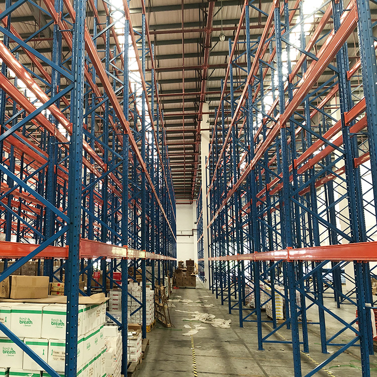 這是廣州貨架廠亞大重型貨架廠家廣州客戶定制的卡板貨架,現在省外到貨安裝已經接近尾聲。倉儲重型貨架安裝的輪廓已經呈現出一種完美的視覺,橘紅色的橫梁與藍色的立柱搭配起來更給人一種高大上的感覺。